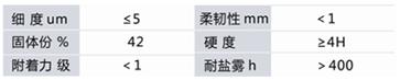该系列产品由进口高品位水性树脂和多种配套水性助剂合成。产品具有漆膜硬度高、附着力强、光亮丰满、流平性好、耐黄变、耐候性优良,漆膜具有抗污染、抗T弯、抗石击等优异性能。